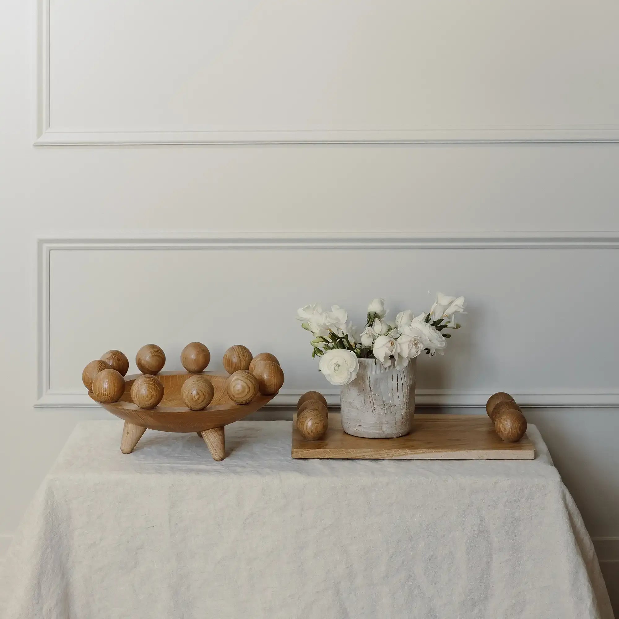 An oversized wooden silhouette with our signature statement spheres. It seamlessly doubles as your coolest fruit bowl and most interesting centerpiece.