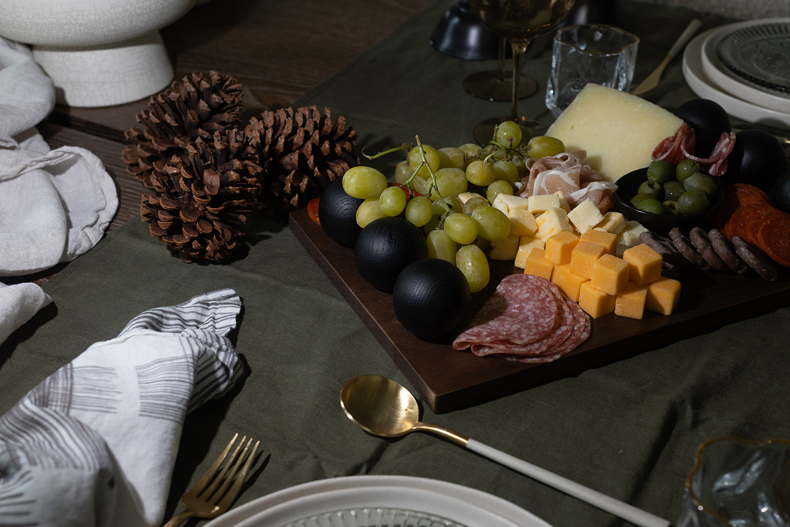 Our signature statement spheres atop a wooden board. Use it to serve cheese or drinks, put it under a vase, on top of a stack of books or turn it over for a little lift.