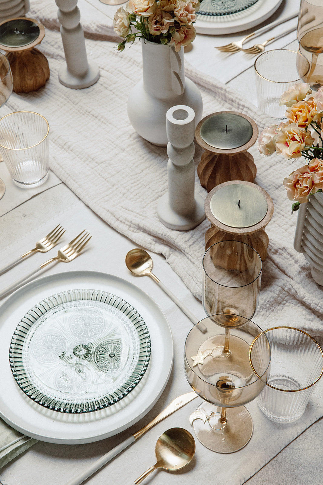 A classic water glass elevated with a ribbed texture and gold trim. Set of four.