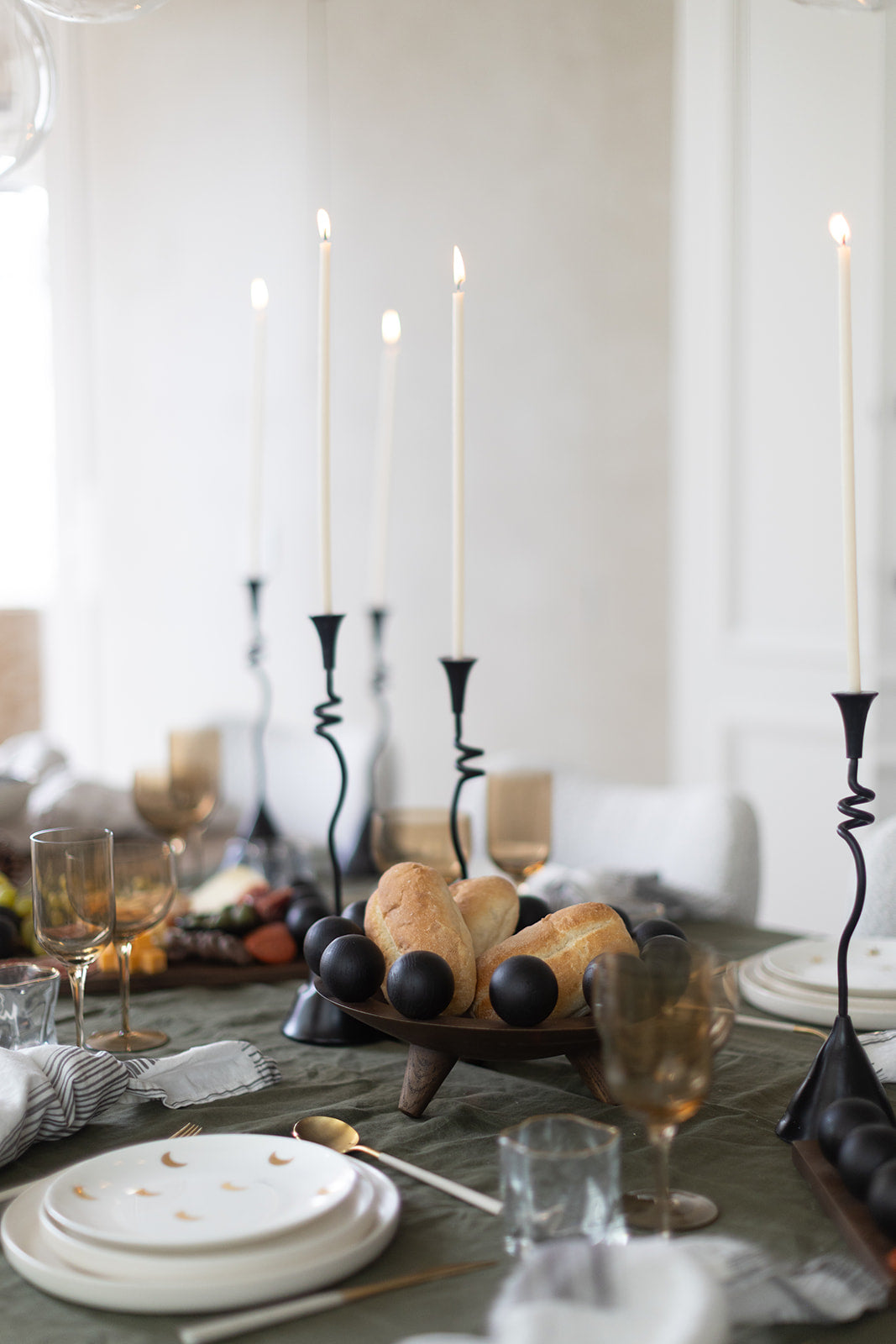 Standing tall and sleek above, our modern aluminum taper candle holders in a black powder finish are a definite statement on a table or styled to stand alone. Set of two.