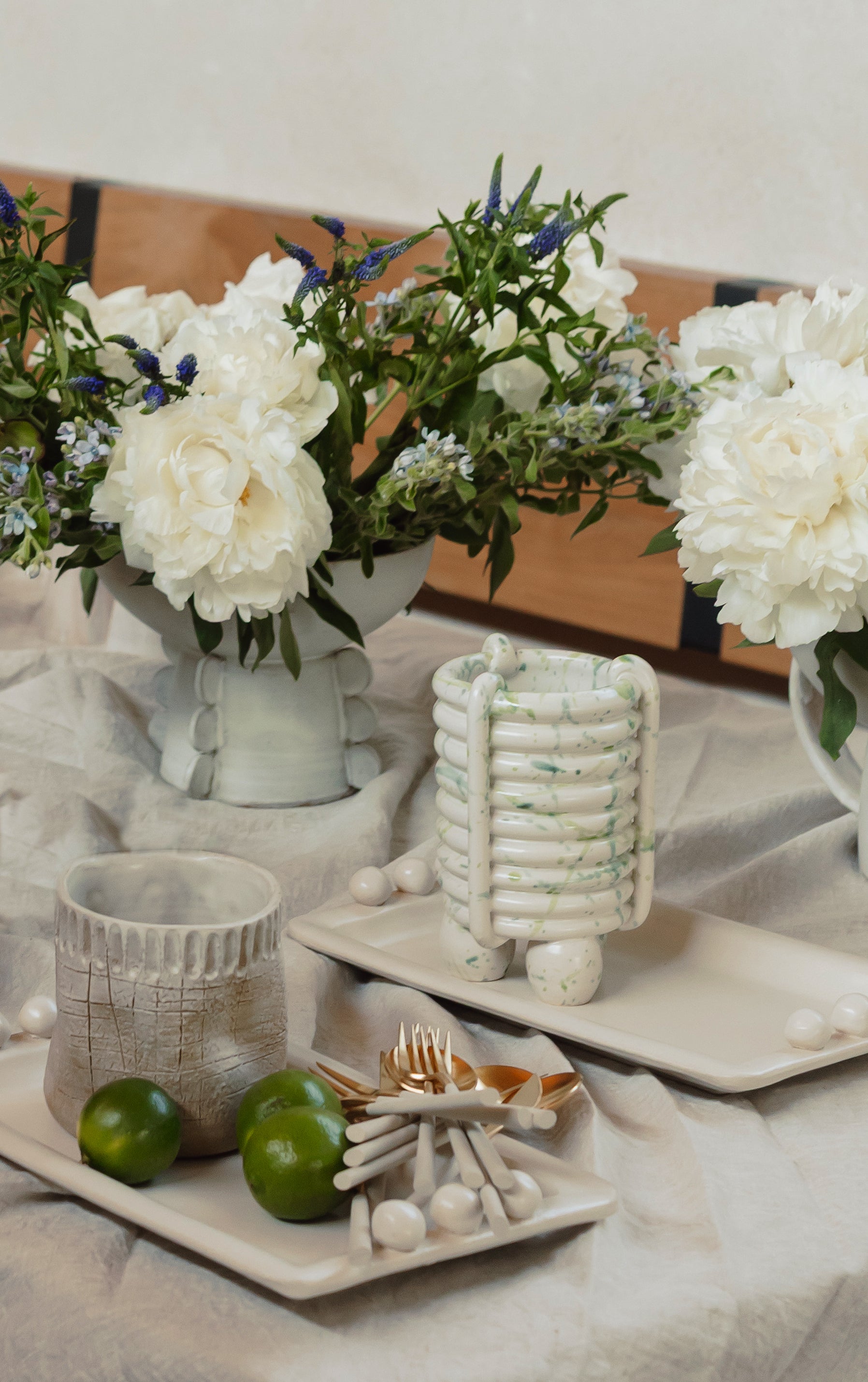 A limited edition of our signature, best-selling High Roller with an irreverent splatter of summer’s favorite colors – Crafted of clay coils set atop a trio of balls, the standout silhouette is striking with or without florals. It’s the perfect centerpiece for any REVELRY tablescape, but is equally stunning on a coffee table or bookshelf